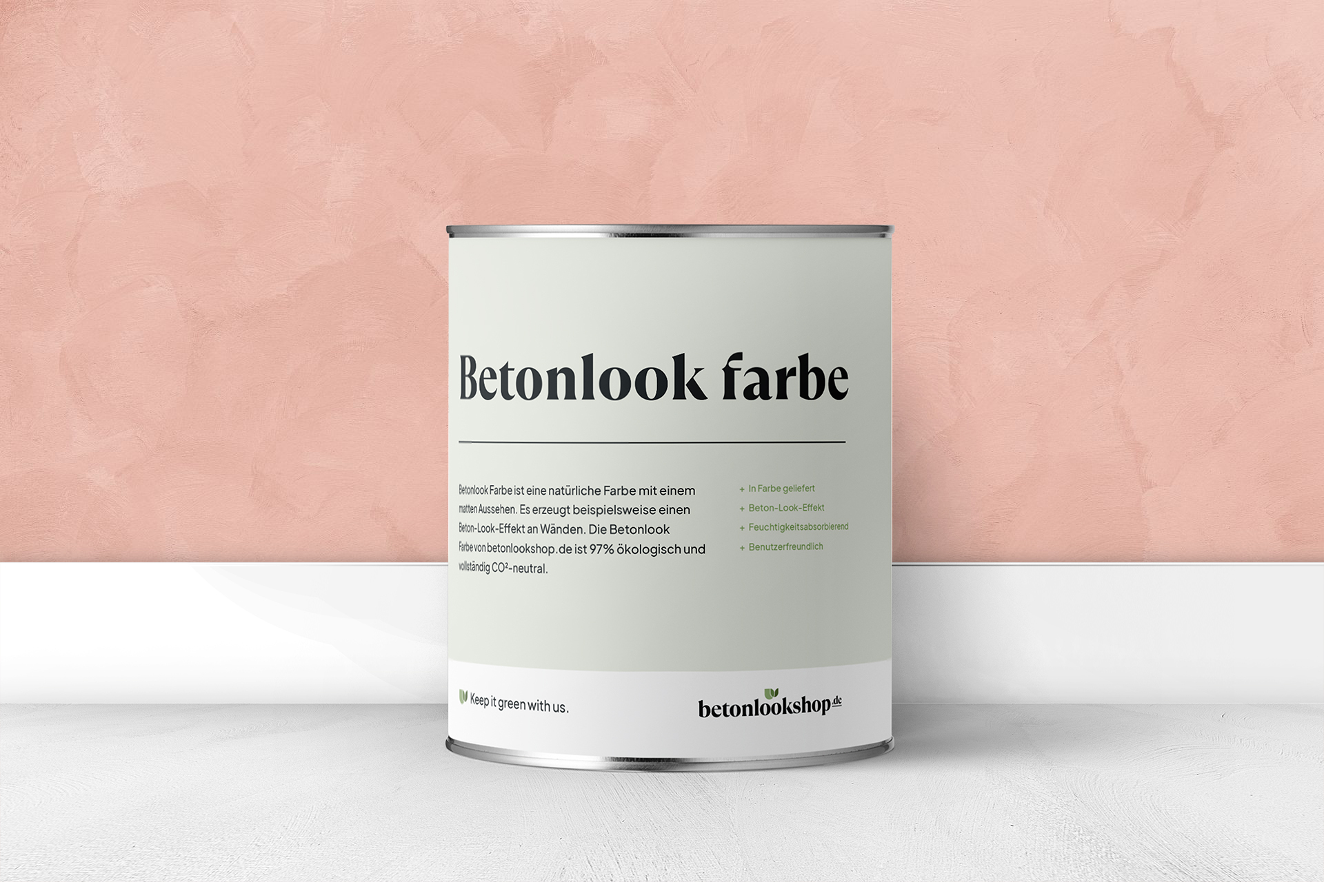 Betonlook / Betonoptik FarbeBetonlook-Farbe ist eine gebrauchsfertige, ökologische Farbvariante, mit der du deine Wand im Handumdrehen in eine schöne Betonoptik verwandelst.