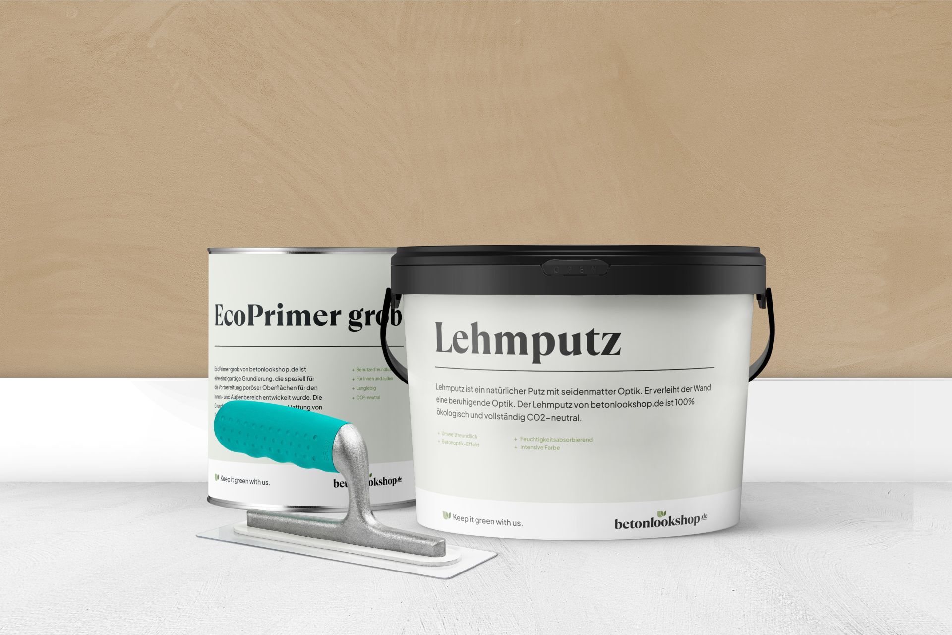 Im Lehmputz Pro Paket findest du alle Produkte, die du benötigst, um sofort mit deinem Projekt zu beginnen. Es enthält den groben EcoPrimer, Lehmputz in der von dir gewählten Farbe und eine Inox Kelle. Diese Materialien sind in ausreichender Menge vorhanden, um dein Projekt erfolgreich abzuschließen. Für das beste Ergebnis empfehlen wir, die Anleitung sorgfältig durchzulesen.